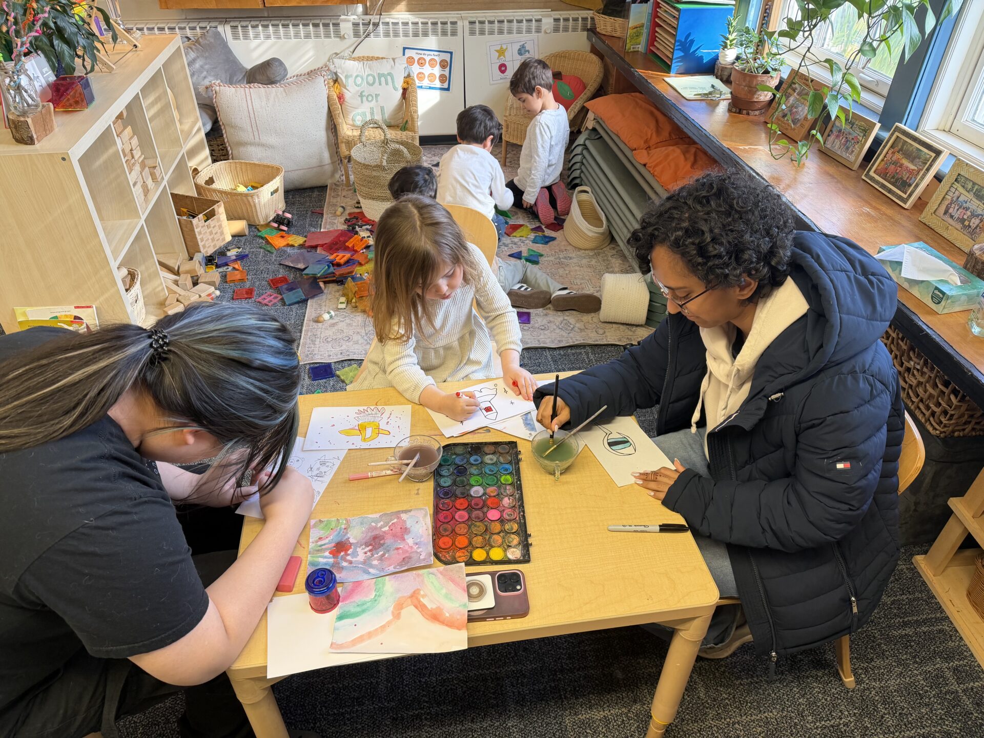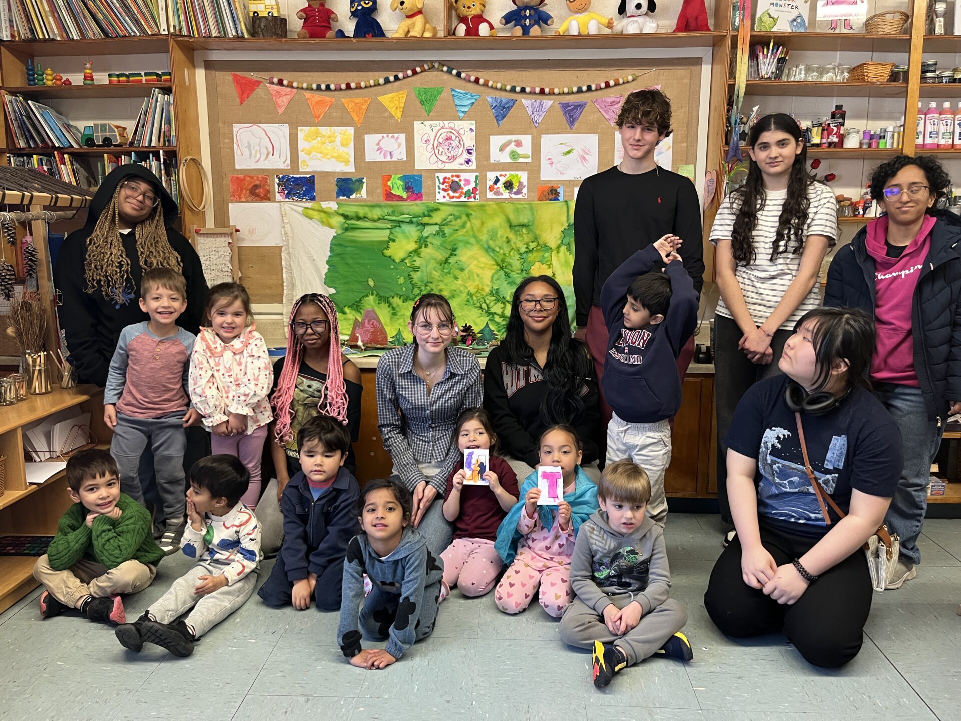 The Upper Schoolers bonding and playing with the Preschoolers in Anastasia’s class. We worked on drawing title cards for the stop-motion credits. They helped to design the title card of the movie as well as the name cards for the Upper Schoolers. The Upper Schoolers and Preschoolers sitting and listening to a story that...
