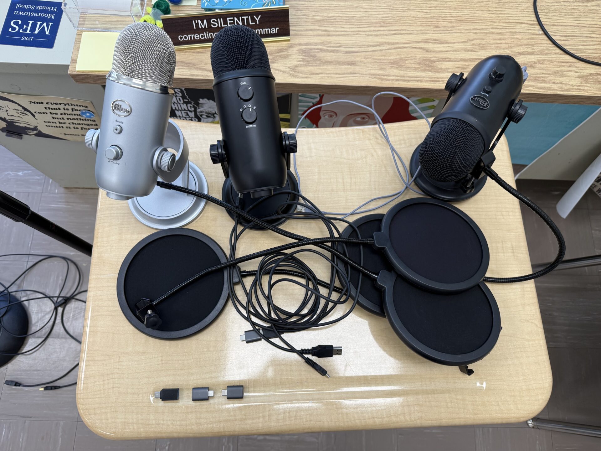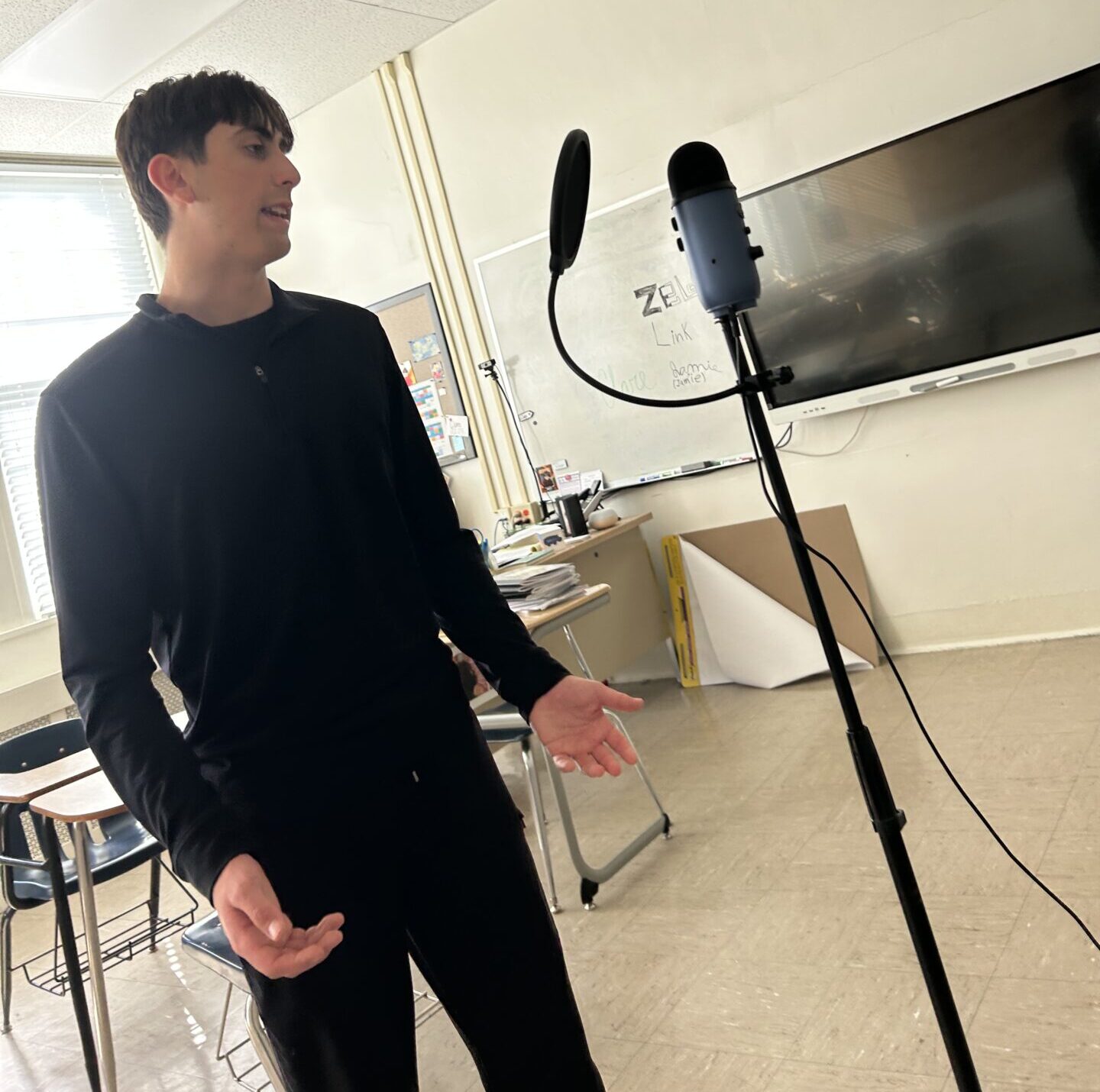 All throughout today, we learned many things about recording a podcast. We started off the day with a lesson from Ms. Day in the computer lab on how to record our voices and set up the microphone. She also taught us how to use GarageBand. That came with many struggles because GarageBand is too...